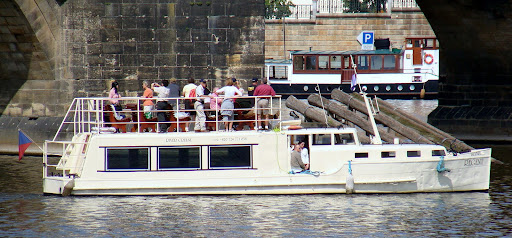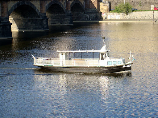 Míříme k restauraci Vltava, ve které jsem v životě nebyl a procházíme pod Palackého mostem. V těchto místem kotví podle mě snad ta nejelegantnější loď, která je na Vltavě. Krásná vyhlídková loď